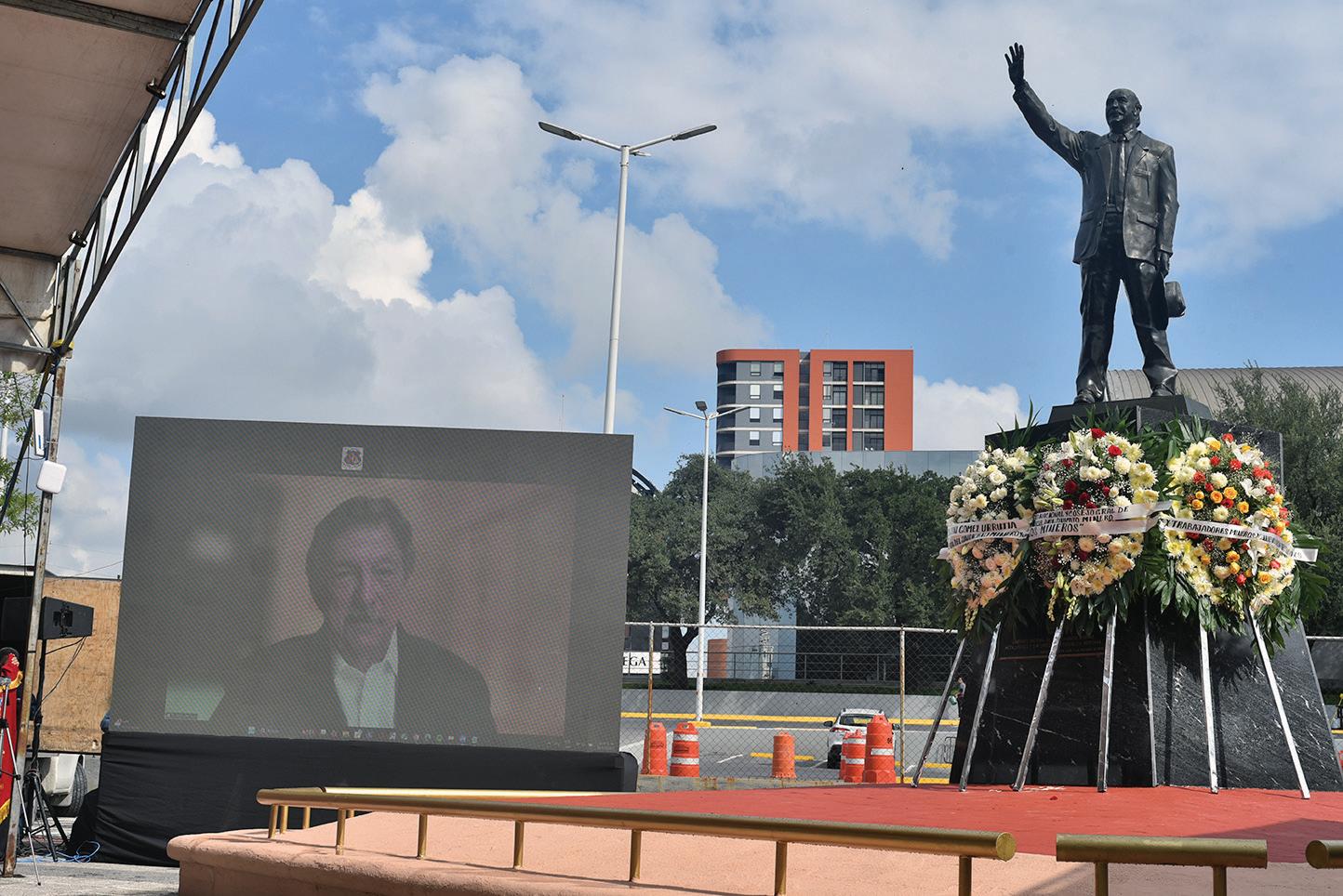 el Panteón del Carmen y la entrega de ofrendas florales en el Mausoleo de la Familia Gómez Urrutia, reafirmando el compromiso del Sindicato Nacional de Mineros de mantener viva la memoria y el legado de quien dedicó su vida entera al servicio de las y los trabajadores. ¢