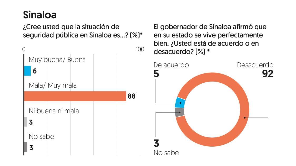 Respecto de la declaración del gobernador del estado, Rubén Rocha Moya, de que en Sinaloa se vive perfectamente bien, 92 por ciento de las personas entrevistadas dijo estar en desacuerdo con esa aseveración.