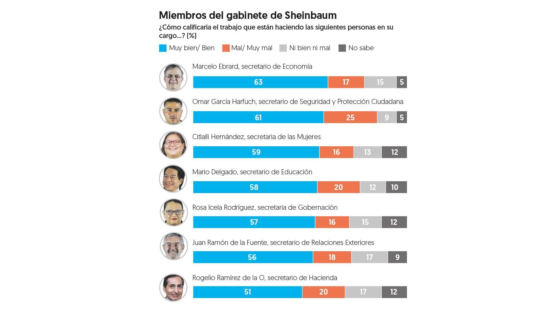 El secretario de Economía suma 63 por ciento de opinión favorable, mientras que el de Seguridad y Protección Ciudadana, 61 por ciento.