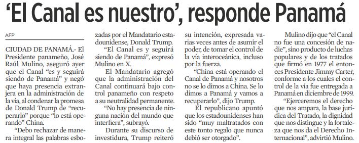 Y no se olvidó de lo que muchos no tomaron en serio: vamos a retomar el Canal de Panamá, al denunciar que ahora está bajo control de China. Agregó que esto es parte de Estados Unidos reclamando su lugar como nación más poderosa y respetada en el mundo. Trump también ha ordenado renombrar el Golfo de México por Golfo de América.