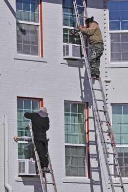 En el espacio conocido como El Punto, en la zona de El Chamizal de esta urbe fronteriza, ayer por la tarde personal de Protección Civil laboró para revisar las condiciones de seguridad y comenzar con la instalación de uno de los tres albergues que se levantarán en Juárez.