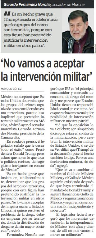 También manifestaron su rechazo a una eventual intervención militar estadunidense en territorio nacional por la anunciada decisión de catalogar como terroristas a los cárteles de las drogas.