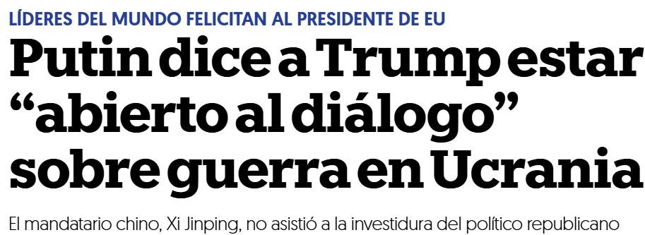 Su par ucranio, Volodymir Zelensky, además de enviar sus felicitaciones, dijo que espera que el magnate ayude a alcanzar una paz justa. El presidente Trump siempre es decisivo, y la política de paz a través de la fuerza que ha anunciado brinda la oportunidad de reforzar el liderazgo estadunidense.