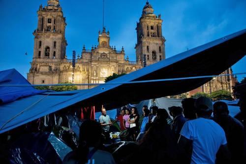 Sobre la calle de Moneda se observaron decenas de elementos de seguridad vestidos de civil para resguardar a la mandataria. Esa calle desemboca en el Zócalo capitalino, donde la Coordinadora Nacional de Trabajadores de la Educación se mantiene en plantón.