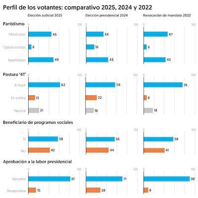 Debido al carácter inédito de esta elección judicial, no existen parámetros de comparación. Sin embargo, la participación fue sustancialmente menor a la de otros procesos de alcance nacional, e incluso inferior a la revocación de mandato de 2022, que registró una participación de 17.1 por ciento (16.5 millones de electores). No obstante, superó la de la consulta ciudadana de 2021 sobre el juicio a ex presidentes, en la que votó sólo 7.1 por ciento del padrón. Cabe señalar que ninguna de estas consultas fue de carácter vinculante.