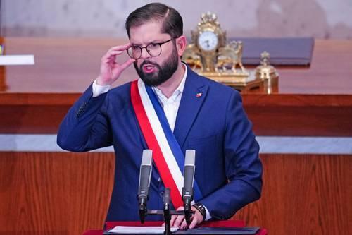▲ El mandatario progresista Gabriel Boric rindió ayer su último informe gobierno en el pleno del Congreso.Foto Ap