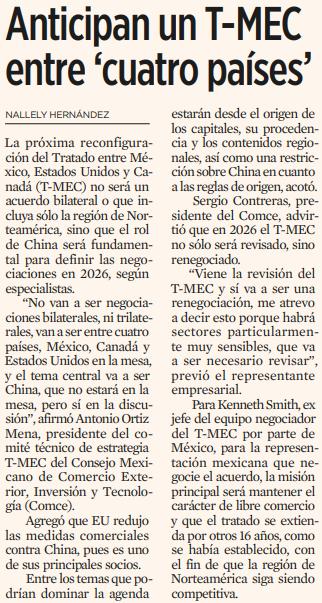 Destacó que hay un buen progreso de los temas que se había convenido revisar para remover irritantes o diferencias que puedan distraer la revisión del T-MEC en 2026.