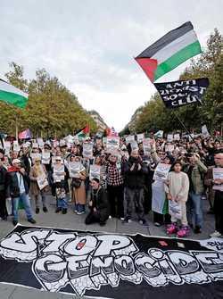 ▲ Manifestantes protestan en París en solidaridad con los palestinos y para condenar la interceptación de la Global Sumud Flotilla por parte de Israel.Foto AFP