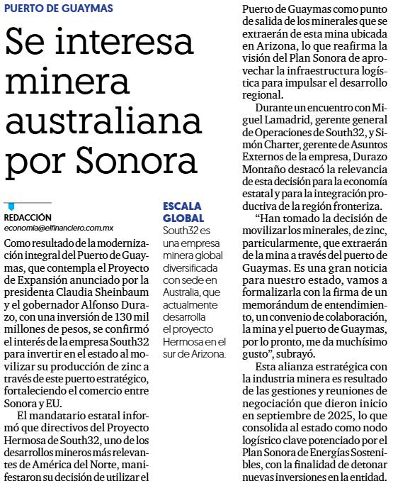 En entrevista con BNamericas, una publicación que se define como “líder en inteligencia de negocios en América Latina”, proveedora de “información estratégica” para empresarios, Aboitiz Saro consideró que a mediados de 2026 todo el rezago en el otorgamiento de permisos habrá terminado. La nota empieza así: “México ha descartado elaborar una nueva Ley Minera, pero está abierto a realizar ajustes puntuales a la reforma de 2023 para facilitar las operaciones públicas y privadas sin afectar los aspectos sociales y ambientales” (https://goo.su/YV7GybU).
