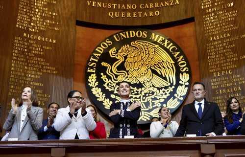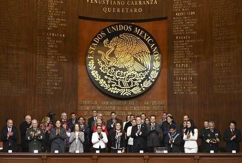 ▲ CELEBRAN 109 ANIVERSARIO DE LA CONSTITUCIÓN. “México no regresará a ser colonia ni protectorado de nadie... ni al régimen de privilegios y corrupción”, advirtió ayer la mandataria en Querétaro.Foto Presidencia