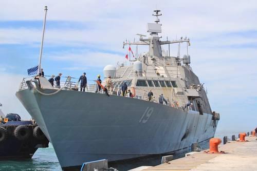▲ ESCALA DE DOS DÍAS EN PUERTO PROGRESO, YUCATÁN . El buque de combate litoral (LCS19) USS St Louis de la marina de Estados Unidos participa en apoyo de la Operación Atlantic Watch en el Golfo de México.Foto cortesía del LCS-19