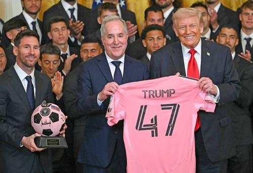 ▲ El viernes pasado el presidente estadunidense recibió al equipo Inter de Miami, donde felicitó a la estrella Lionel Messi y al dueño Jorge Mas, hijo del líder anticastrista Jorge Mas Canosa, y anticipó que pronto celebrarán “lo que ocurre en Cuba”.Foto Afp
