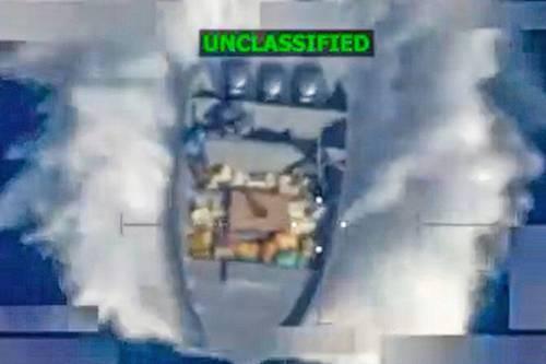 ▲ El secretario de Guerra de Estados Unidos, Pete Hegseth, divulgó un video en el que se puede ver que una de las embarcaciones atacadas transportaba varios paquetes y afirmó que eran operadas por “grupos terroristas”, sin detallar su nombre.Foto Afp