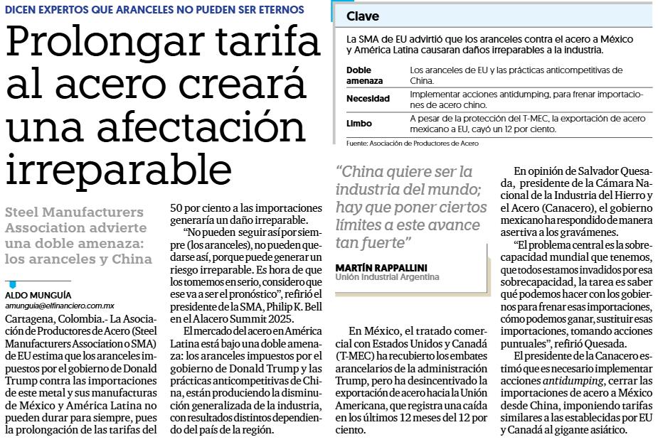 El también director general de ArcelorMittal añadió que los aranceles impuestos, por Estados Unidos, ya han tenido repercusiones negativas en las cadenas de producción complementarias de la industria acerera de la región.