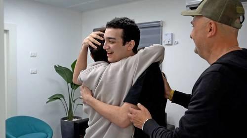 ▲ Edan Alexander, el rehén estadunidense-israelí liberado ayer por Hamas, abraza a familiares que lo recibieron en algún lugar del sur de Israel.Foto Xinhua