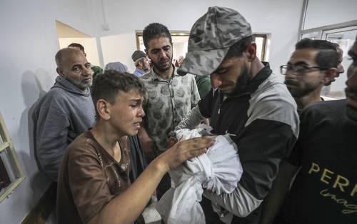 ▲ Dolor por el deceso de un bebé en los recientes bombardeos en Jabaliya, Gaza.Foto Xinhua