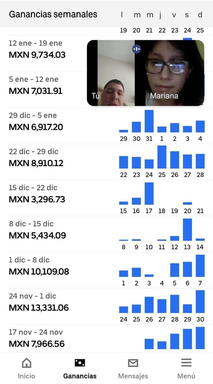 Los ingresos de Carlos M al trabajar en Uber superaron los 27 mil pesos netos en diciembre, pero la aplicación lo dio de baja para enero. Ha comenzado un proceso de demanda contra la empresa. Como otros conductores entrevistados, considera que a partir de la entrada en vigor de la reforma laboral sus ingresos se vieron mermados.