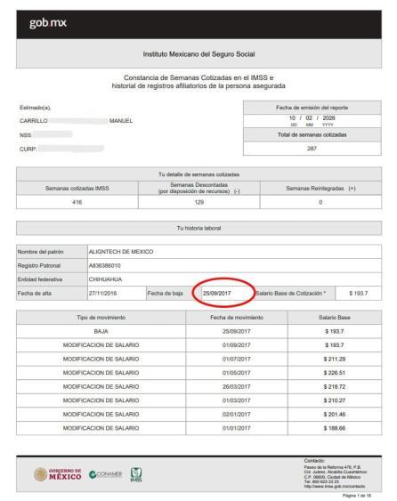 En otro caso, Eloy López ingresó 48 mil pesos netos en enero en DiDi para estar asegurado en febrero. La aplicación le descontó la cuota del seguro pero lo dio de baja del IMSS el 31 de enero. Actualmente su constancia de semanas cotizadas