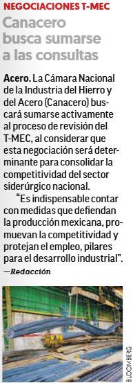 Por separado, la Cámara Nacional de la Industria del Hierro y del Acero (Canacero) señaló estar lista para sumarse al proceso de revisión.