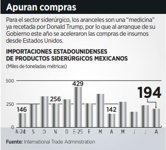 Este sector, junto con el del aluminio y el del cobre, es uno de los más golpeados por los aranceles que impuso el gobierno de Trump, pues la tasa es de 50 por ciento, pese a que México compra más productos de esta aleación a Estados Unidos.