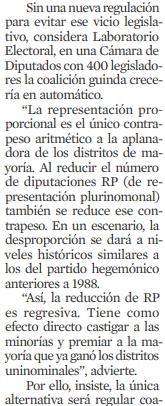 “No se puede aspirar a reducir la representación proporcional o modificar los criterios de mayoría si primero no hayequidad en la contienda electoral. Hoy Morena es la primera fuerza política de este país, por mucho, y tiene un financiamiento público más o menos tres veces mayor al del Partido del Trabajo, que es el que tiene menos porcentaje. Es imposible pensar que con esas diferencias de recursos económicos haya equidad en la contienda comicial”, explicó.