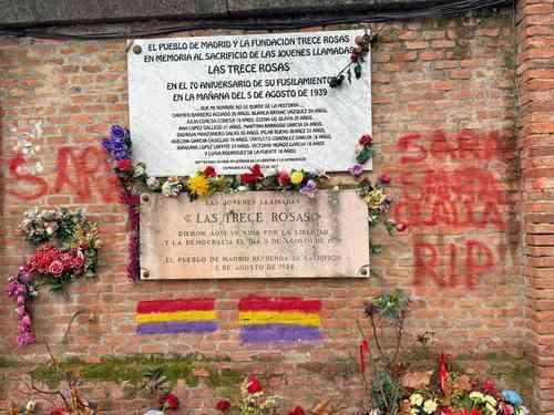 ▲ En el mausoleo de las Trece Rosas apareció una amenaza contra una periodista.Foto de las redes de Sarah Santaolalla