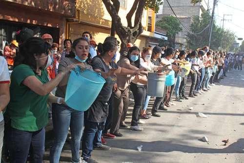 ▲ En estos dos terremotos, quienes se la jugaron fueron los mexicanos de a pie, los de todos los días, dispuestos a salvar vidas. En la imagen, una cadena humana para sacar escombros.Foto José Antonio López