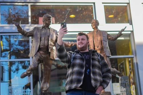 ▲ El presidente estadunidense se ha esforzado por negar su involucramiento en los abusos del criminal sexual. En Washington, sigue como un atractivo turístico la estatua que representa la amistad entre Trump y Epstein.Foto Ap