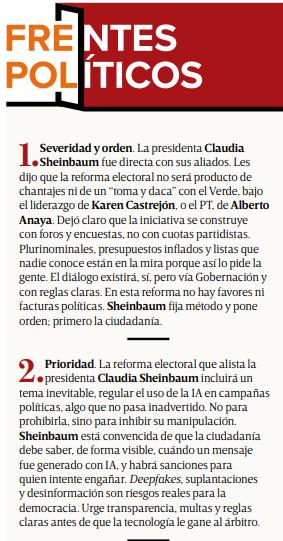 La mandataria apuntó que ya lo ha hecho en otras ocasiones para abordar la agenda legislativa, “pero no es para decir: ‘a ver, ¿cómo le hacemos para que ustedes estén de acuerdo con la reforma?’”