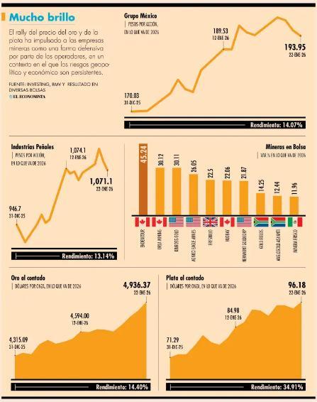 Las acciones de las empresas mineras que cotizan en la Bolsa Mexicana de Valores (BMV) mantienen una tendencia positiva en enero, impulsadas por precios récord en metales clave y un entorno macroeconómico favorable.