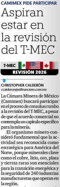 Por ello, continuó, potenciar la actividad minera ayuda a reducir las dependencias de proveedores externos y fortalecer la autosuficiencia de minerales en América del Norte.