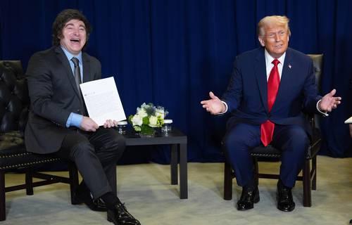 En concreto, lo único tangible que Milei obtuvo de su fugaz reunión con Trump fue, aunque parezca chiste, un tuit impreso del mandatario estadunidense (que éste le entregó y aquél presumió) que a la letra dice: “El muy respetado presidente Javier Milei ha demostrado ser un líder verdaderamente fantástico y poderoso para el gran pueblo de Argentina, avanzando en todos los niveles a una velocidad récord. Heredó un desastre total con una inflación horrible causada por el anterior presidente de izquierda radical (muy parecido al corrupto Joe Biden, el PEOR presidente en la historia de nuestra nación), pero ha devuelto la estabilidad a la