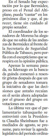 Por otra parte, legisladores de Morena sostuvieron una reunión privada con el secretario de Administración y Finanzas, Juan Pablo de Botton, en la que destacaron el aumento al impuesto sobre nómina, la emisión de más de un millón de licencias permanentes y la puesta en marcha del gravámen verde, como “ejemplos de una buena administración”.
