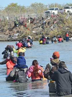▲ Hasta hace unos años era común en Piedras Negras, Coahuila, ver que cientos de familias cruzaban diariamente a pie el río Bravo, en su intento de llegar a Eagle Pass, Texas.Foto Cuartoscuro