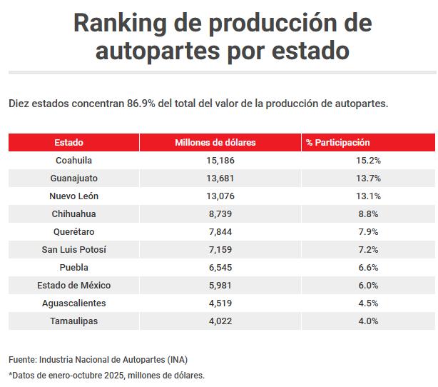 La estructura productiva regional, insiste, sigue siendo complementaria. “La producción de autopartes en Estados Unidos son 300 billones de dólares y en México son 120”, señala, lo que refleja que el mayor valor agregado permanece en el norte del continente.
