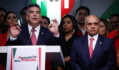 ▲ Alejandro Moreno, en conferencia de prensa, llamó a crear un frente anti-Morena, con el objetivo de arrebatar al partido guinda la mayoría en el Congreso.Foto Cristina Rodríguez