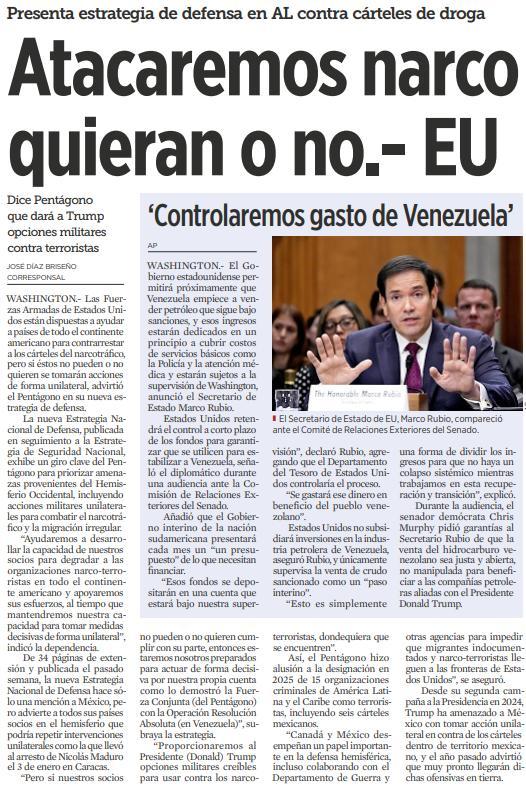 Otra fuente de controversia al interior del Congreso han sido las acciones militares contra las narcolanchas en el Caribe y la posibilidad de inminente ataque en tierra para debilitar al gobierno de Venezuela, lo cual ha desatado una creciente oposición en el Capitolio basada en preocupaciones legales, constitucionales y pragmáticas tanto de demócratas como de algunos republicanos.