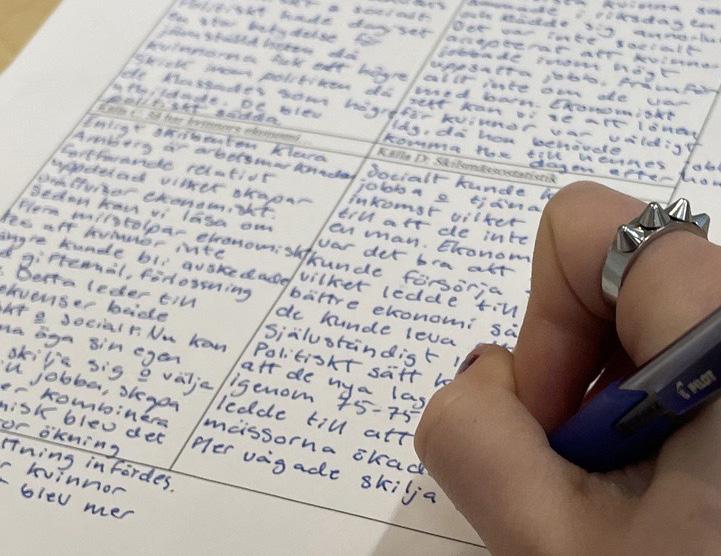 ointresse och jag funderar kring om mer intresseväckande artiklar eller filmklipp hade hjälpt, om lektionen blev alltför diskussionsintensiv, eller om det handlade om ett tyst ifrågasättande av innehållet. Samtidigt var större delen av klassen aktiva i diskussionerna och lyfte relevanta exempel.
