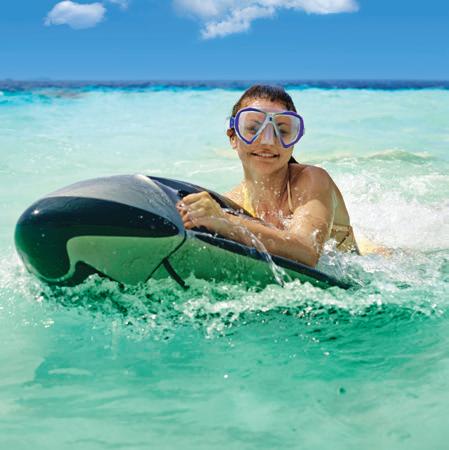 The Seabob is the ultimate high performance marine toy. Powered by an E-Jet electric jetstream system, it allows you to effortlessly zip in and out of the water like a dolphin, moving freely on the surface and exploring the underwater world.