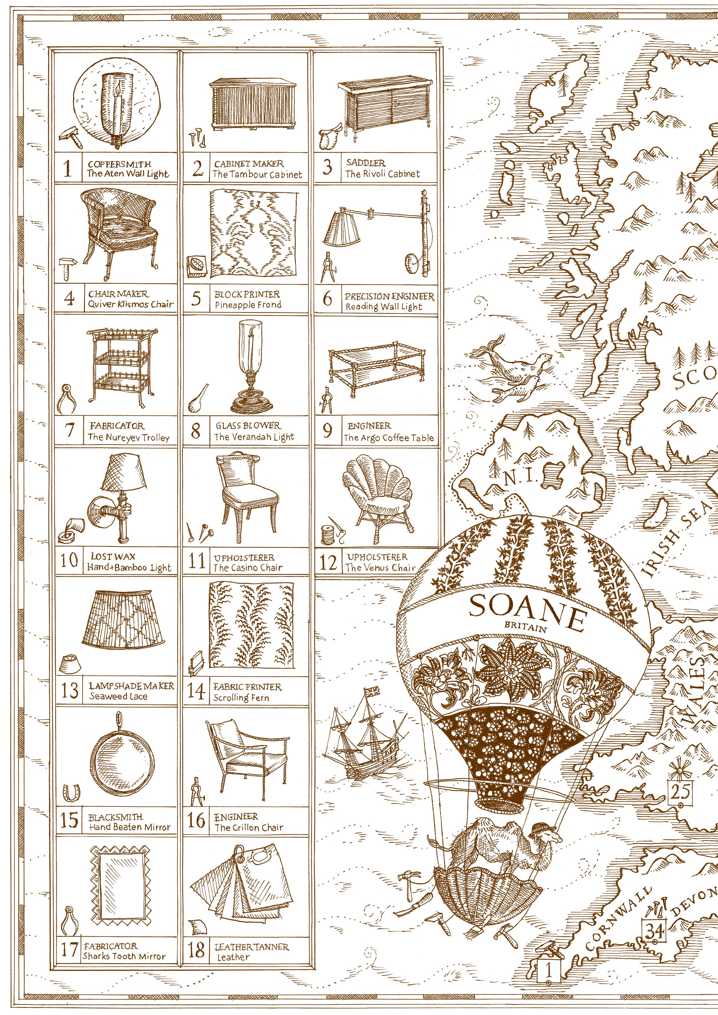 For Spring Soane introduces fabrics and wallpapers with a gentle palette and classic botanical forms. Corresponding patterns are printed across fabrics and wallpapers for an enveloping effect. New chairs and bar stools are restrained and useful whilst new lighting designs are characterised by undulating forms, warm materials, and elegant fluted glass.