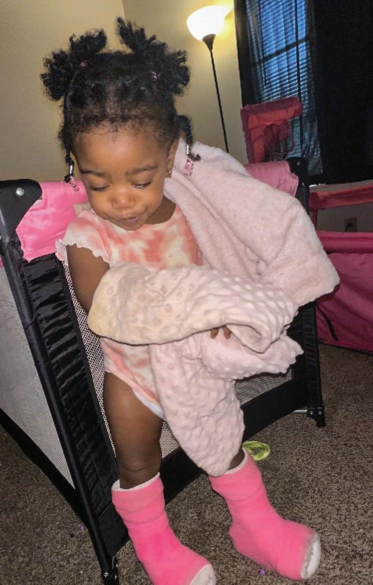 At home, Nevaeh loves to cuddle up with her mom, her books and her beloved pink blanket. She’ll also spend hours playing with any toy that makes sound, or enjoying new TV shows, like Elmo, Doggyland or Curious George. And if she needs a little space, she’ll crawl upstairs and retreat to her peaceful room.