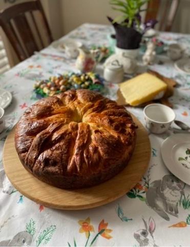 For me, Massa Sovada was a sign that Good Friday had arrived. My mother, as I do now, would stay up through the night punching down, shaping and baking the Folares The glorious symbolic rings or braids of sweet bread inlaid with eggs became the best alarm clock, ringing in a time to sit with family, break bread, reflect and let Easter in. I carry this tradition today with my family. My daughters and I spend the night in the family room so that I am close to the kitchen. We watch movies until they can no longer stay awake, and I begin my Easter magic. They wake up to a table set with Easter plates, Portuguese cheese and butter, candied almonds and of course the warm glorious Folare de Massa Massa Sovada is a time traveler bringing us closer to those we have lost throughout the years, of Festas gone by and sweet memories of the traditions that make us who we are