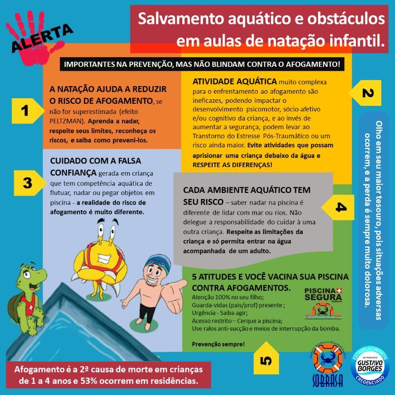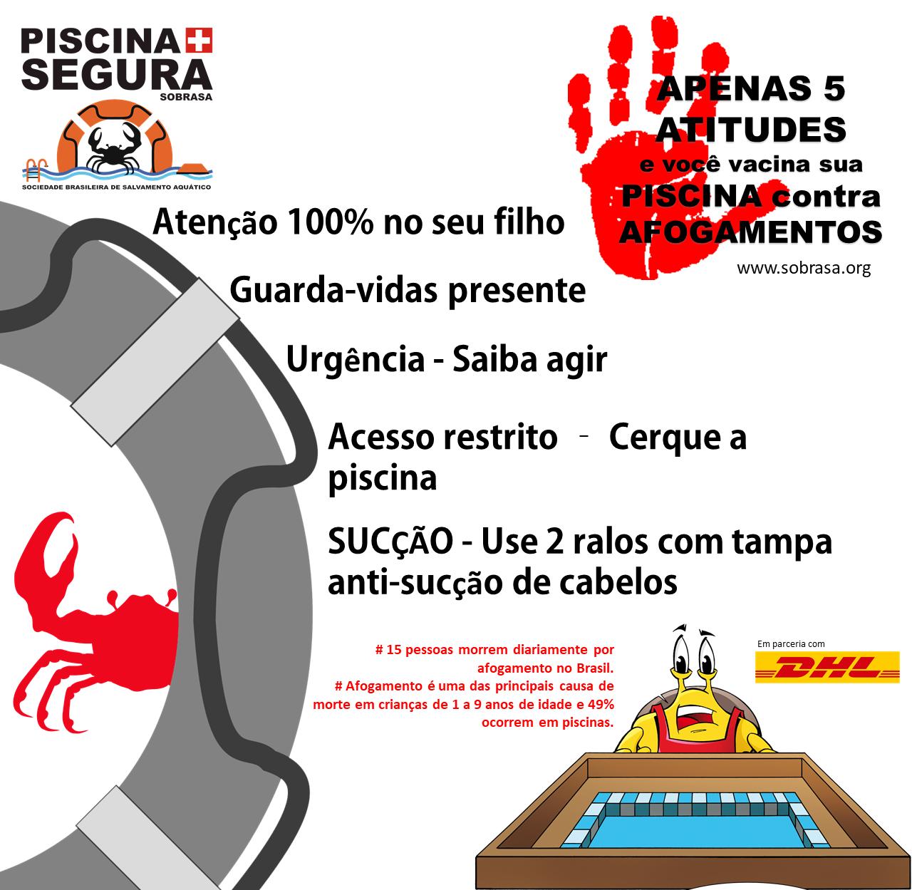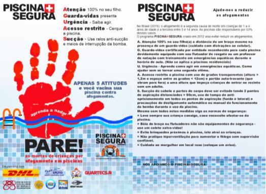 The “POOL+SAFE” program created in 2013 by SOBRASA reduces incidents of drowning in swimming pools through the education of swimming teachers and students in gyms, schools and clubs. AVOID