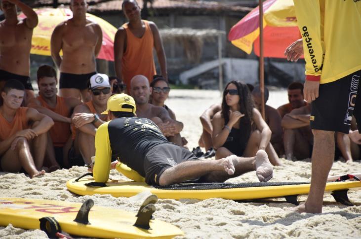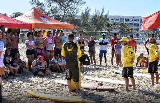 SOBRASA president, running a Surf-Save class at Praia da Macumba, RJ.