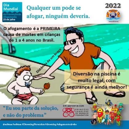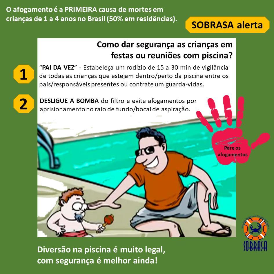 16 Brazilians die from drowning every day. Drowning is the leading cause of death for 1 to 4 years old, 2nd cause for 5 to 9 years old, and third for 10 to 14 years old. Our children die mainly from drowning in Brazil. This happens all over the world and for this reason, the United Nations and the World Health Organization have determined that July 25th is the WORLD CELEBRATION OF LIFE DAY and thus the prevention of drowning. A day where we, from SOBRASA, act throughout Brazil through our 3,000 volunteers with water safety tips and prevention actions.