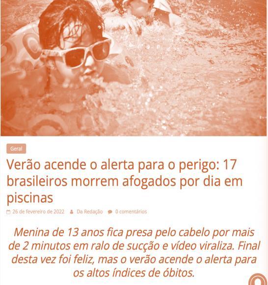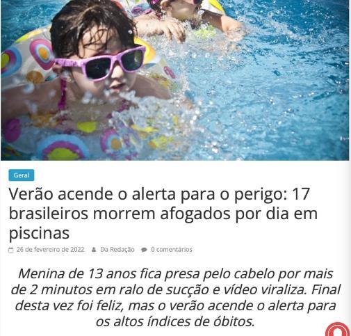 Among the biggest victims are children from 1 to 4 years old. Until the last bulletin, consolidated in 2021 and based on data from 2019 DATASUS, deaths from drowning in this age group were the 2nd cause of all death. In 2020 it became the 1st CAUSE of CHILD DEATH, which draws attention to the care INSIDE THE HOME. The increase in fatal drowning victims was also reflected in children between 5 and 9 years old, which raised from 3rd to 2nd place in the ranking among all causes of death.