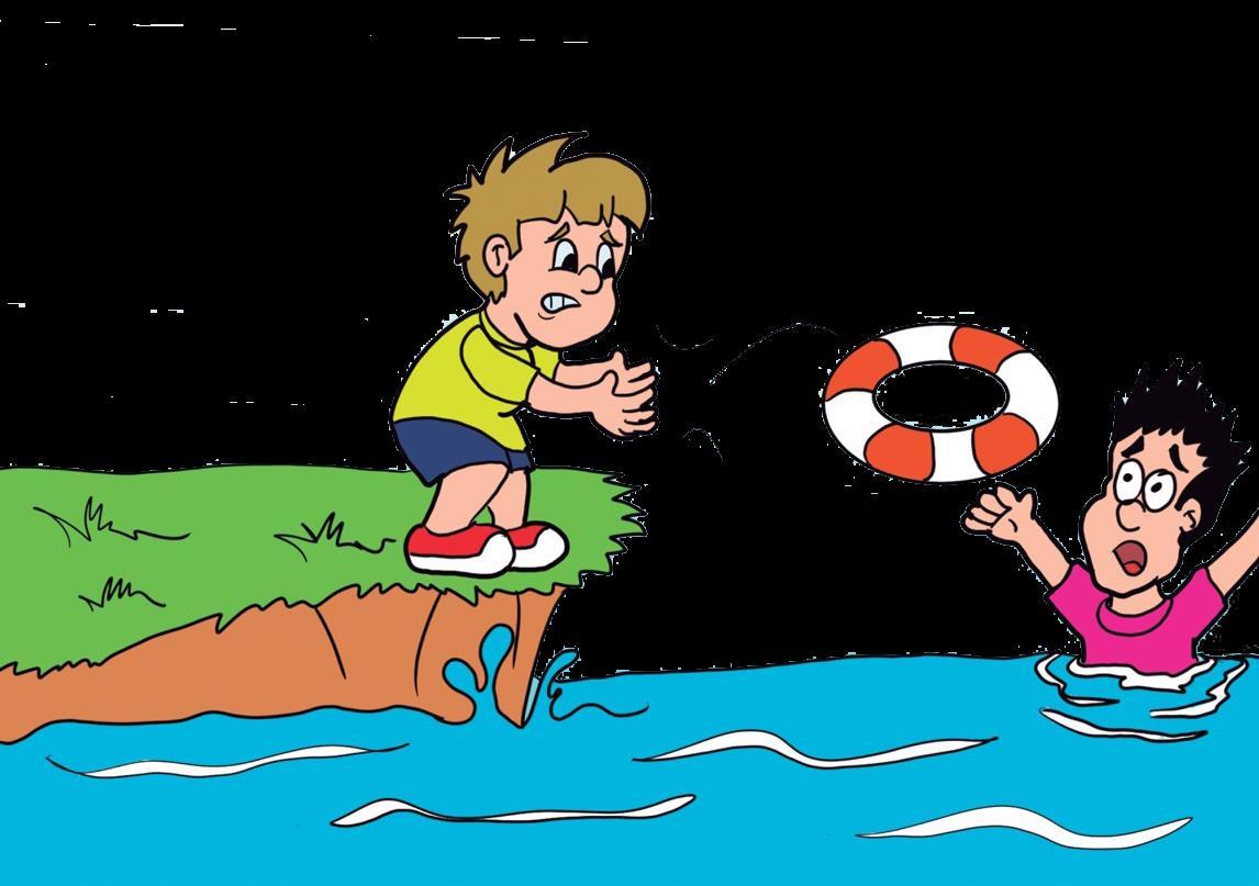If it's going to help: Avoid going into the water to help, CALL 193, THROW floating material and wait for a professional to arrive