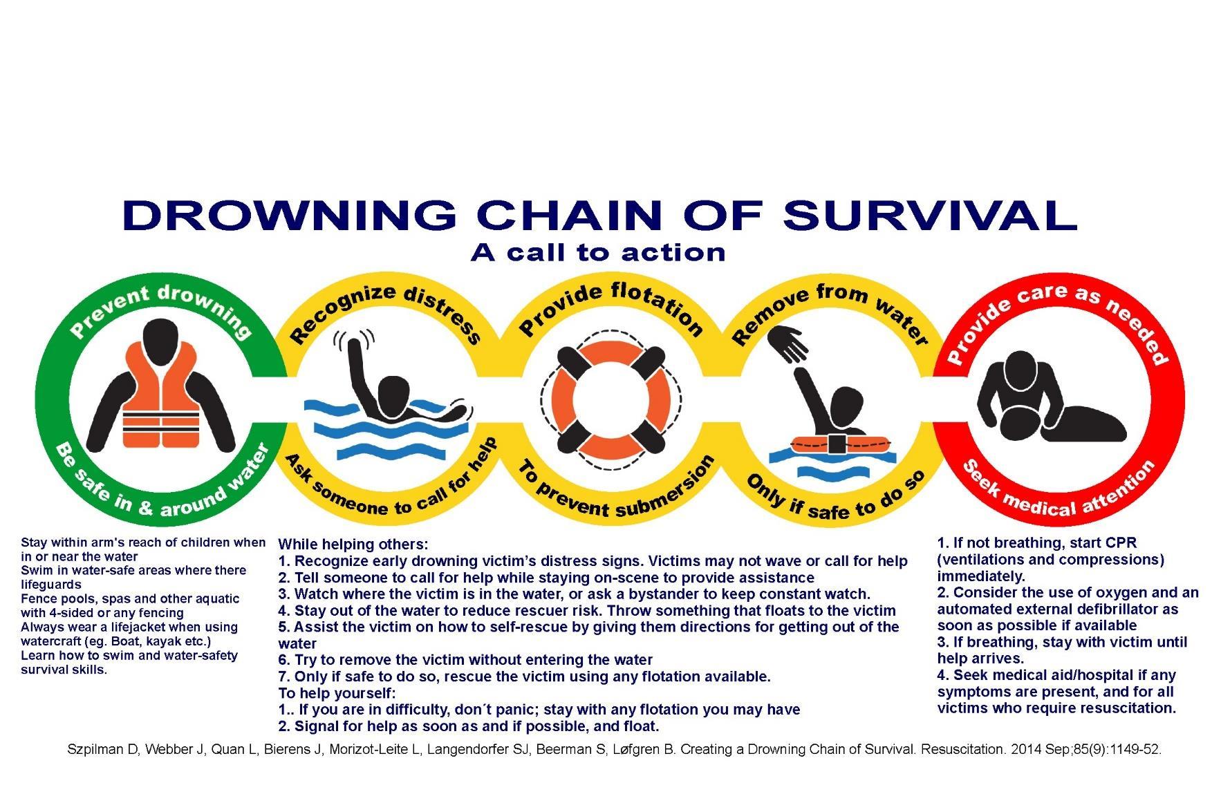 The drowning survival chain is the most important tool in education on the reduction and mitigation of drownings.