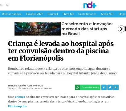 The Southeast is the place with the highest occurrence of drownings in swimming pools (42%), although the greatest risk is the Central-West region, possibly due to a greater number of swimming pools