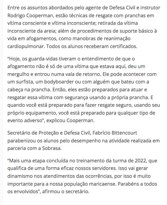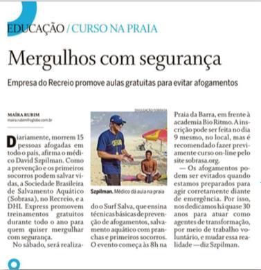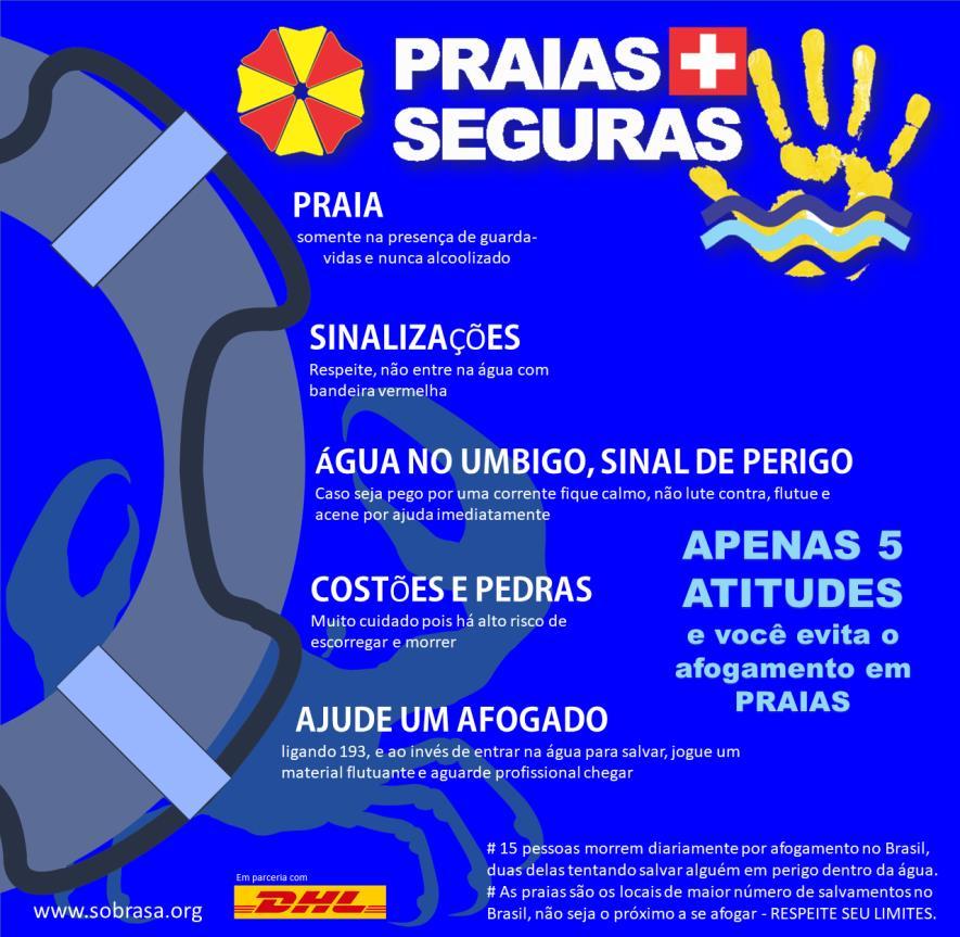 The prevention program – ”BEACH + SAFE" created in 1999 by SOBRASA reduces drownings on beaches through the education of surfers, aquatic sportsmen and health professionals.